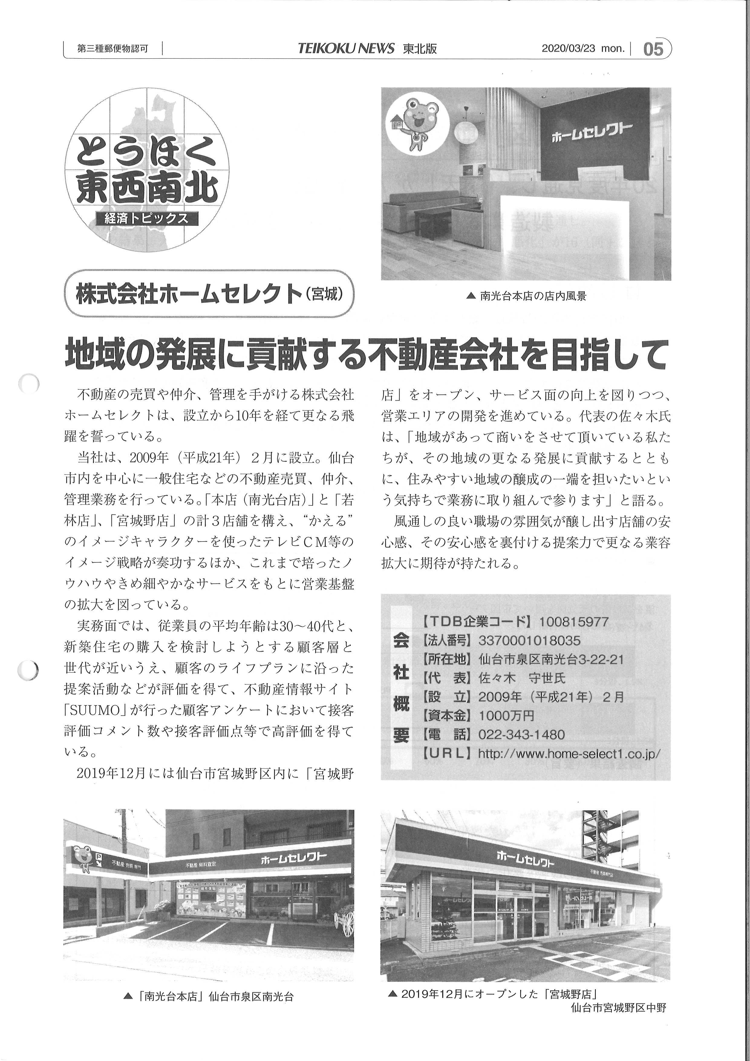 TOPニュース&トピックス【ニュース】帝国ニュースに掲載されました ニュース&トピックス 【ニュース】帝国ニュースに掲載されました 2020.03.21 帝国データバンクで2020年3月23日に発行された「帝国ニュース 東北版」に当社が掲載されました。 一覧に戻る